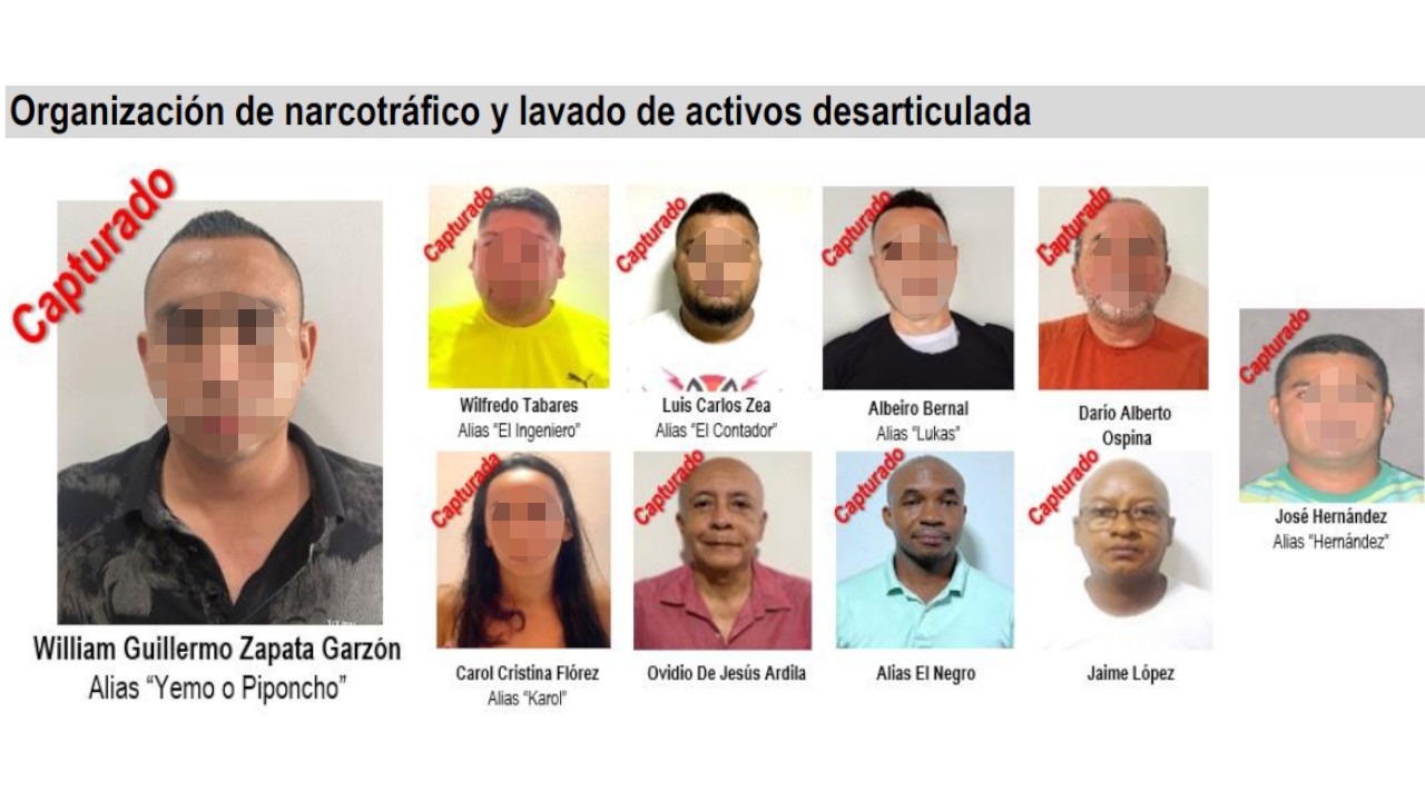 También fueron capturados cinco supuestos principales colaboradores y dos exfuncionarios más, quienes facilitaban el lavado de activos.