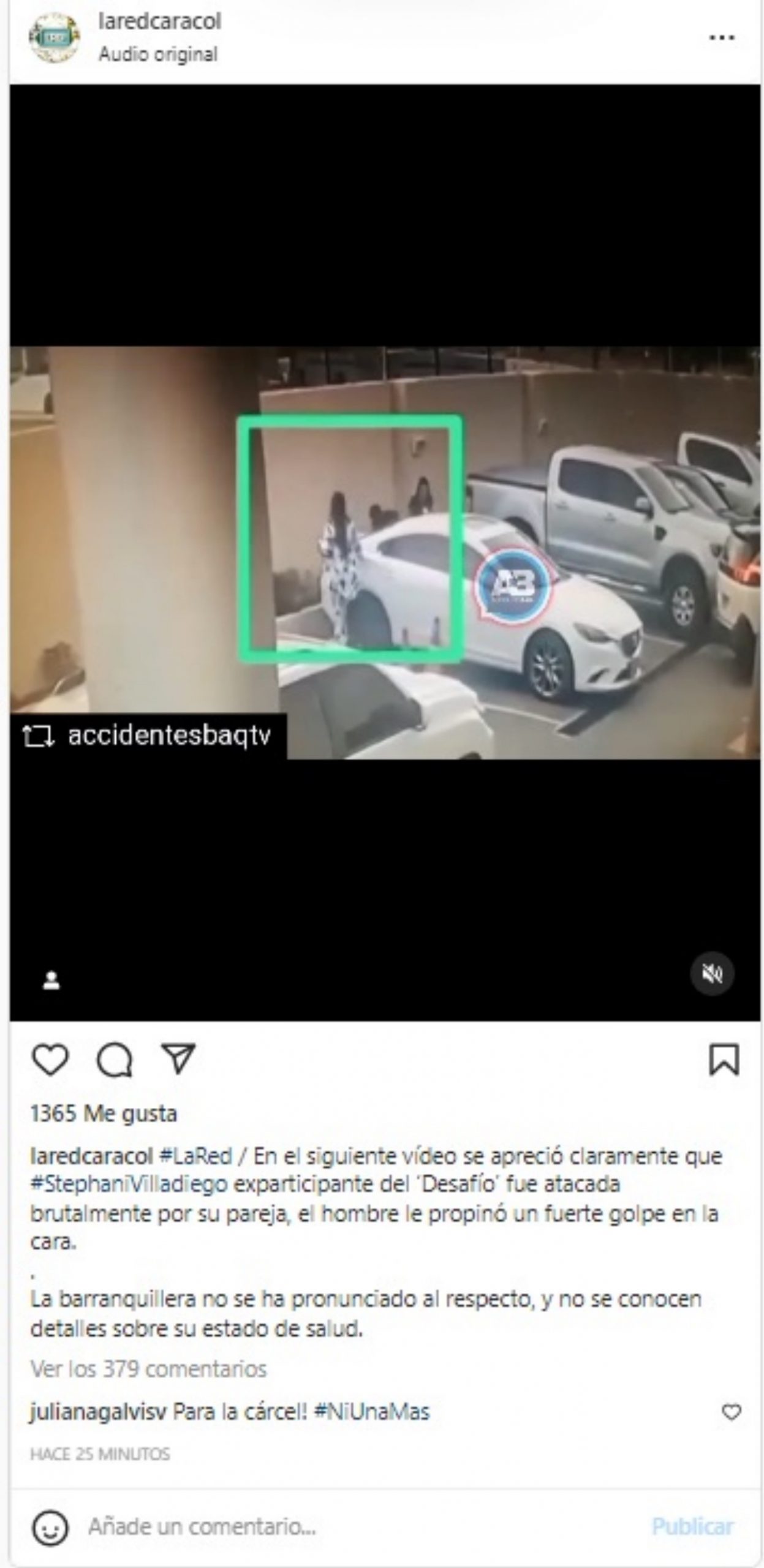 En video de cámara de seguridad quedó el momento en el que Stephanie Villadiego, la barranquillera que participó en el reality show de Caracol Televisión ‘Desafío The Box’, fue agredida por su pareja.