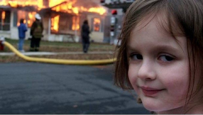 Una niña sonriente mientras una casa entera arde en llamas, es tal vez uno de los memes más famosos desde que estos comenzaron a inundar la red.