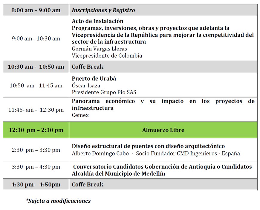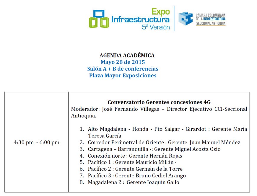 Programación académica de Expoinfraestructura organizada por la CCI, feria que se realizará el 28 y 29 de mayo en el Pabellón amarillo de Plaza Mayor Exposiciones.