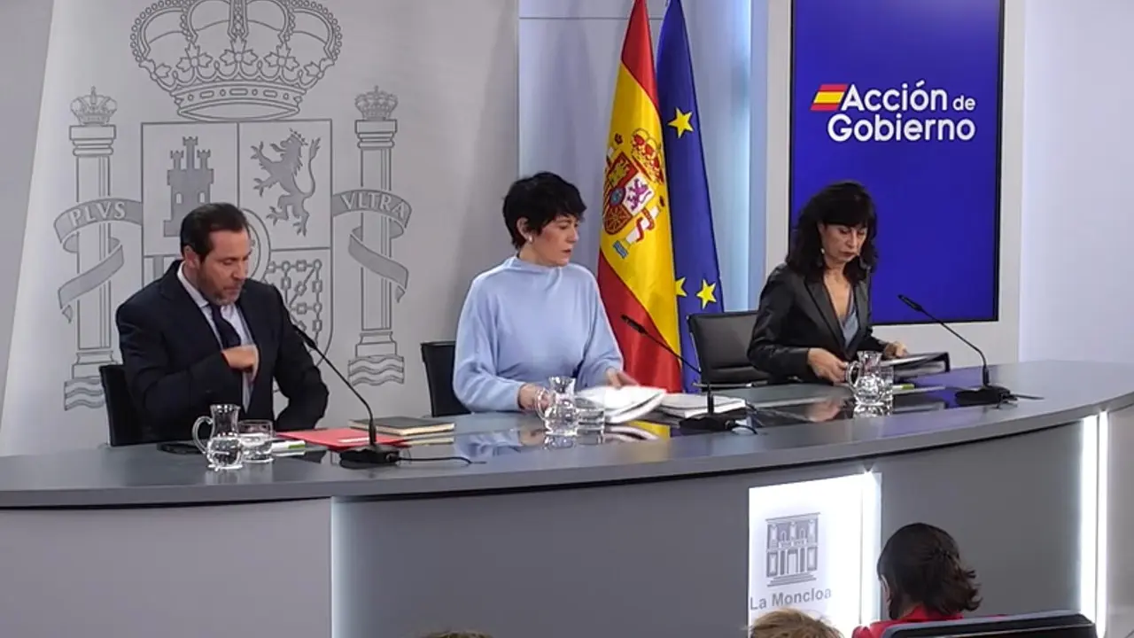 El ministro de Transportes y Movilidad Sostenible, Óscar Puente, la ministra de Inclusión, Seguridad Social y Migraciones y portavoz del Gobierno, Elma Saiz, y la ministra de Igualdad, Ana Redondo: Gobierno de España
