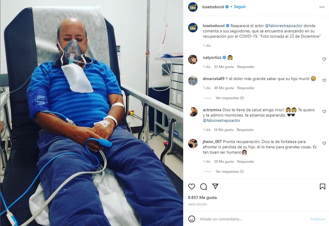 “Reaparece el actor Fabio Restrepo. Comenta a sus seguidores, que se encuentra avanzando en su recuperación por el COVID-19”, se lee ne la publicación que rápidamente acaparó la atención de los internautas. De hecho, algunos no estaban al tanto del difícil momento que está pasando.