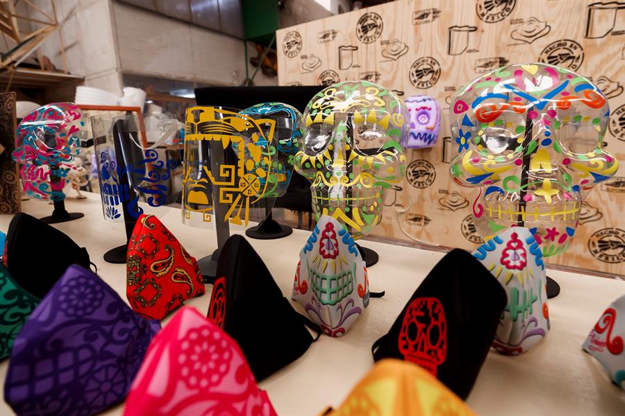El taller mexicano de plástica El Volador que lleva más de 30 años haciendo máscaras, escenografías y ofrendas del Día de Muertos se ha reinventado con la fabricación de cubrebocas y máscaras inspirados en la cultura mexicana.