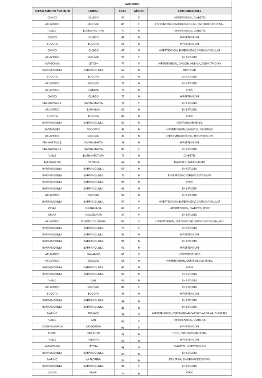 55 fallecidos por coronavirus reporta Colombia en las últimas 24 horas