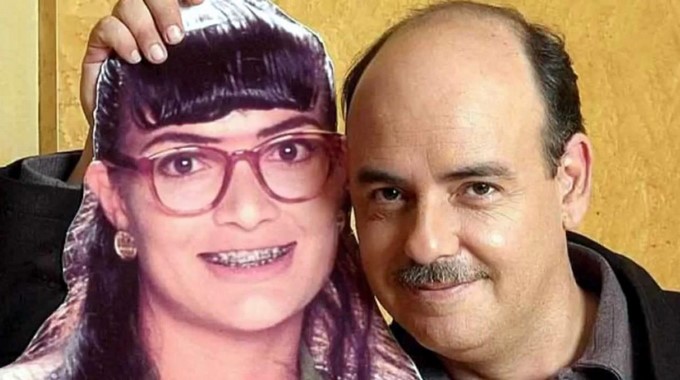 Fernando Gaitán posa con una presentación de Betty la Fea