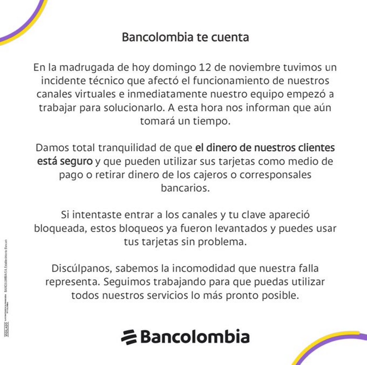 En redes la gente estalla y muestra inconformismo por la “escueta” respuesta que se obtiene de Bancolombia, que consideran es insuficiente.