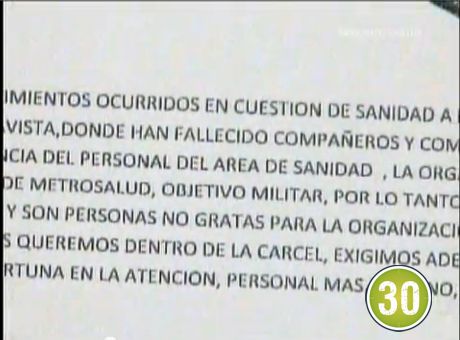 Minuto30.com .- Se complica la situación hospitalaria en las cárceles de Medellín e Itagüí, luego de que Metrosalud confirmara la cancelación de su contrato con Caprecom para atenter los centros presidiarios, por amenazas a sus médicos.