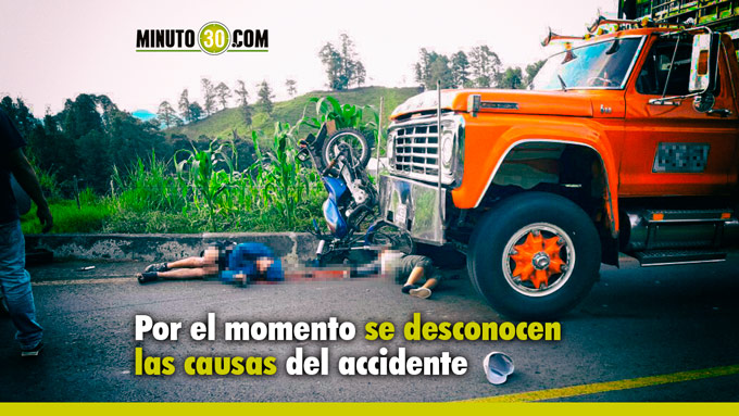 Minuto30.com- Un accidente de tránsito en el oriente del departamento, entre los municipios de Sonsón y La Unión se saldó con la vida de un hombre y una mujer ocupantes de la moto. Hasta el momento se desconocen las causas del siniestro, el cual fue atendido por los organismos correspondientes.