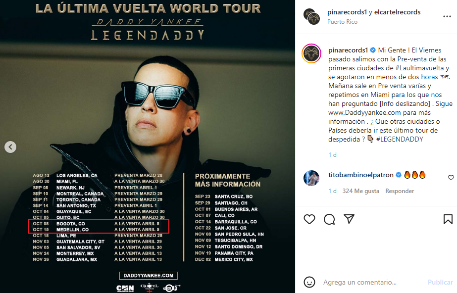 Barranquilla, Cali, Bogotá y Medellín fueron las cuatro ciudades del país elegidas por Daddy Yankee para traer el concierto ‘La Última Vuelta’, su última gira. Las fechas para la venta de boletería cambiaron. En Minuto30 te traemos todos los detalles.
