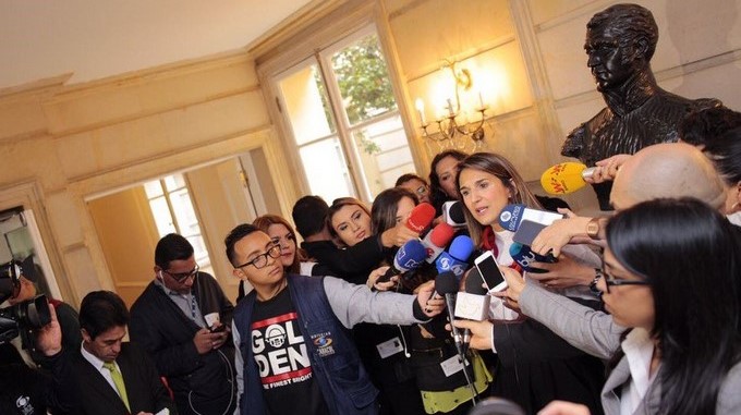 Ministra de Educación, Yaneth Giha, da declaraciones. Foto: Twitter @YanethGiha