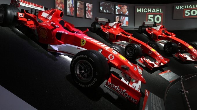 Vista de la exposición “Michael 50” que el Museo Ferrari dedica al expiloto de Fórmula Uno