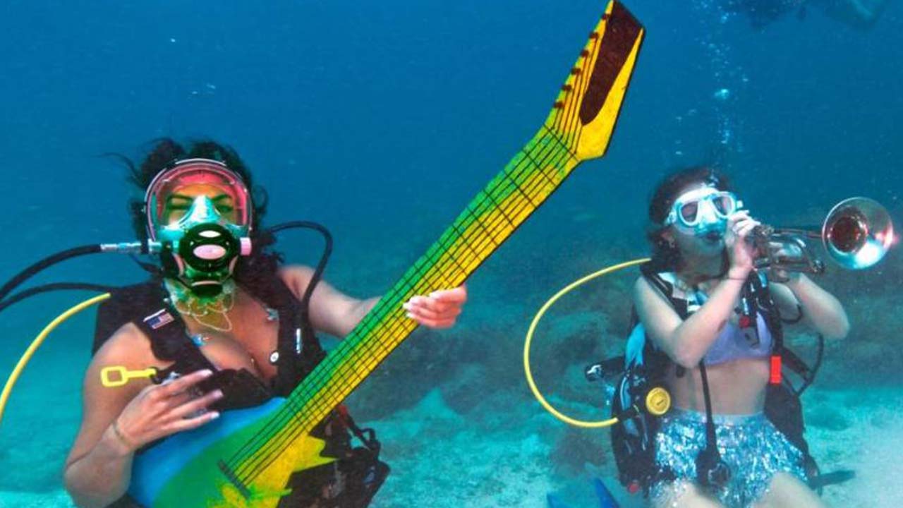 Los músicos submarinos tocaron canciones famosas como ‘Yellow Submarine’, de los Beatles; ‘La Sirenita’ y ‘Piratas del Caribe’, y muchas más.