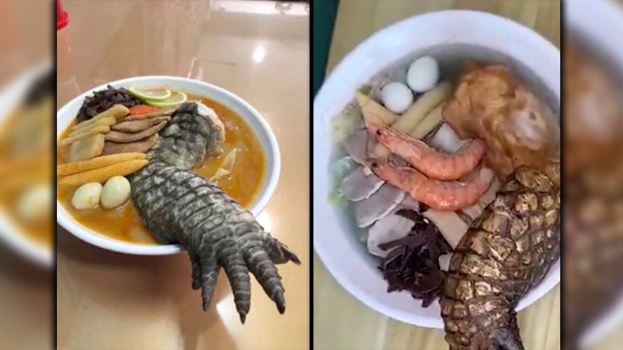 En redes se comparten imágenes de un plato viral en Taiwán. Se trata de un platillo que combina los noodles con patas de cocodrilos.