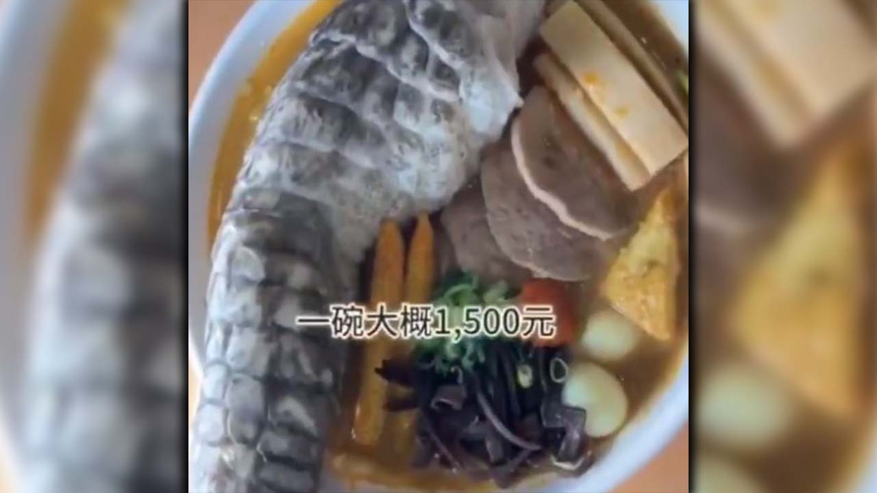 Según el medio CNN, el platillo contiene huevos de codorniz, carne de cerdo, maíz tierno, brotes de bambú, hongos negros, pasta de pescado y la parte especial, pata de cocodrilo.