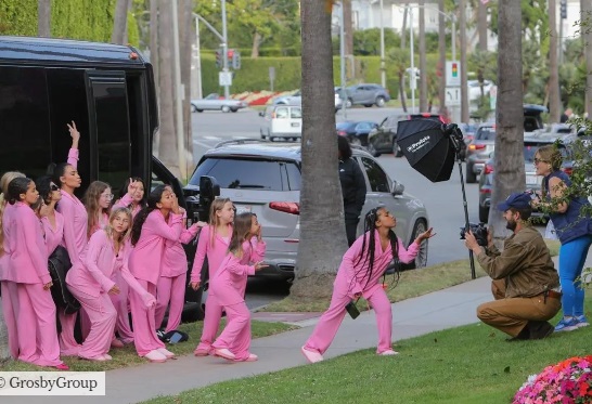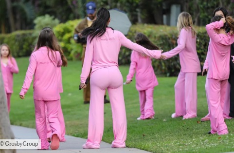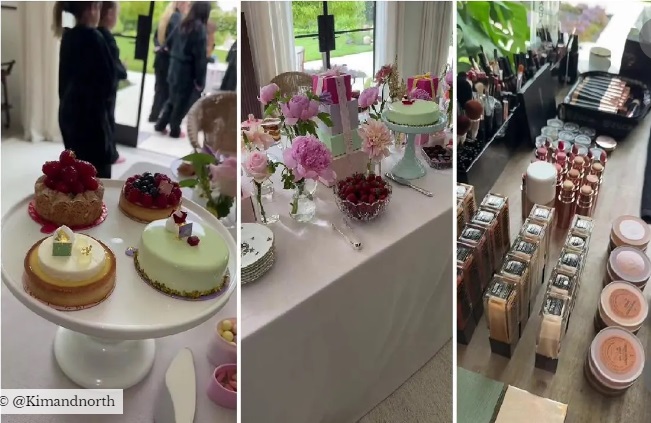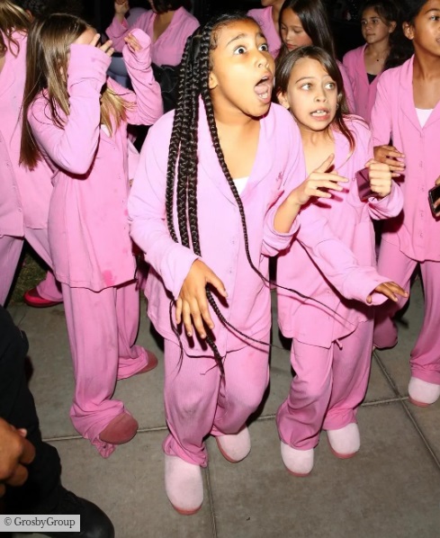 La famosa empresaria Kim, organizó una fiesta-pijamada con las mejores amigas de su hija y siguiendo el rosa que está muy de moda por la película Barbie, toda la decoración y las niñas lucieron este color.