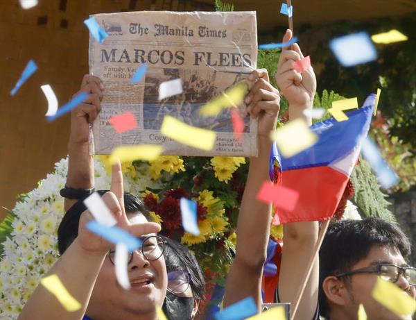 Además de los actos oficiales, cientos de personas se congregaron en distintos puntos del país y mostraron pancartas y viejas portadas de periódico que recordaban aquel momento, hoy lejano para buena parte de los filipinos, que en 2022 votaron en masa a Ferdinand Marcos Jr., hijo del dictador (fallecido en 1989 en su exilio de Hawái) y hoy presidente del país.