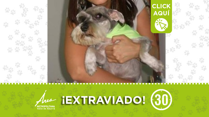 Este peludito es un Schnauzer que se perdió hoy por el sector de La Floresta. Llevaba una pañoleta azul y roja. Si lo ha visto, por favor ayuda a ‘Firu’ a que llegue a su casa llamando al: 3216682908 ó 3002267310