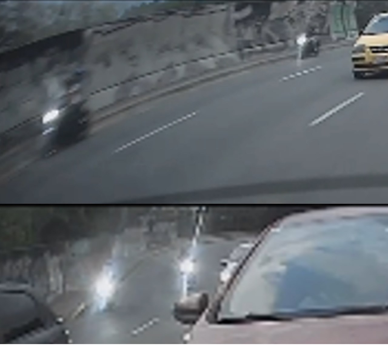 Es allí cuando vuelve a hacer su aparición el cómplice que les guarda la espalda y les hace pantalla haciendo una vez más zigzag entre los carros, para proteger a quienes habrían cometido el hurto.