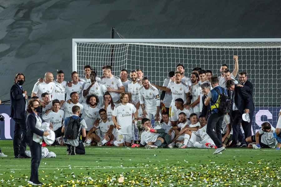 Florentino Pérez, presidente del Real Madrid, ponderó el trabajo de los futbolistas y cuerpo técnico durante la pandemia del coronavirus y aseguró que la 34ª Liga de la historia del conjunto blanco ha sido “la más difícil en el momento más difícil” y que es un título “para la historia que jamás” olvidarán.