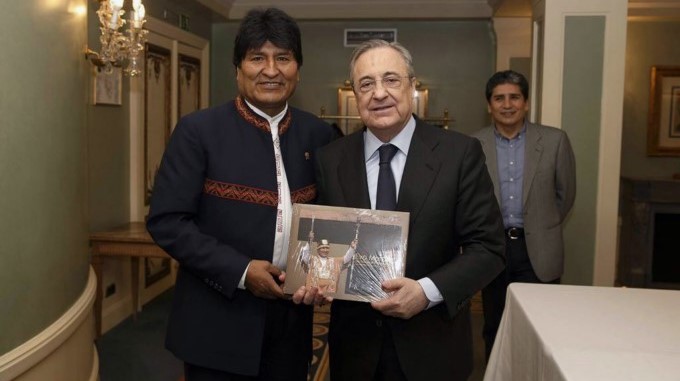 Morales y Pérez ya estuvieron juntos en septiembre de 2013, cuando el presidente del Real Madrid le invitó a visitar el estadio Santiago Bernabéu, donde pudo conocer a algunas leyendas del equipo “blanco”, como el ya fallecido Alfredo Di Stéfano y el actual entrenador, Zinedine Zidane.