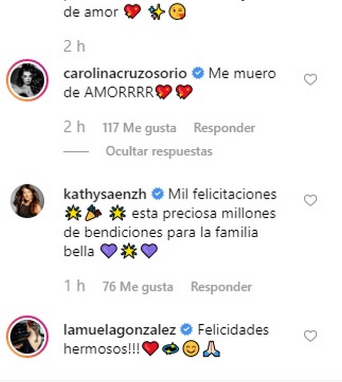 La publicación en menos de una hora ya cuenta con más de 55 mil ‘likes’ y cientos de comentarios en los que se destaca el de algunos famosos como, Carolina Cruz, Kathy Sáenz, Manuela González, Alejandra Azcárate, entre otros.