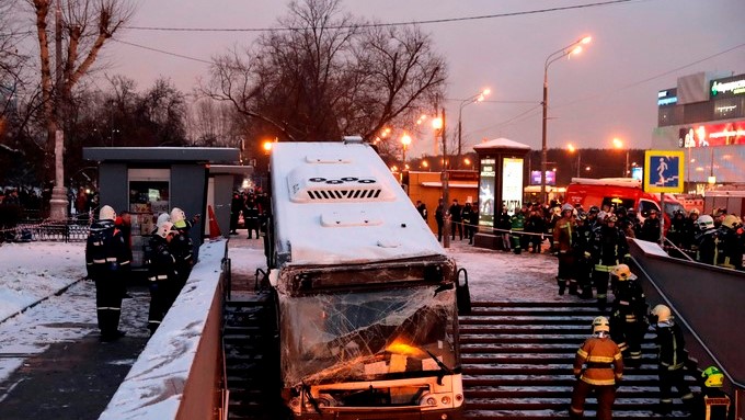 Al menos cinco personas murieron hoy y otras 13 resultaron heridas cuando un autobús irrumpió en la acera y se precipitó en la entrada de una estación de metro, en el oeste de la capital rusa, informó la Policía de Moscú.