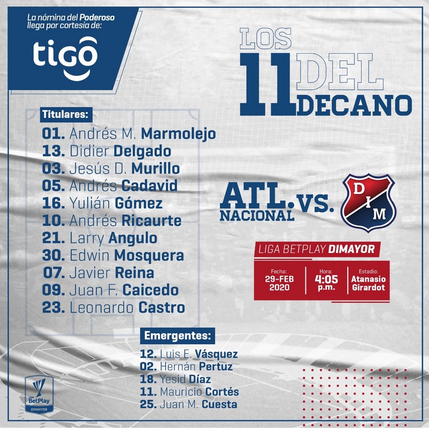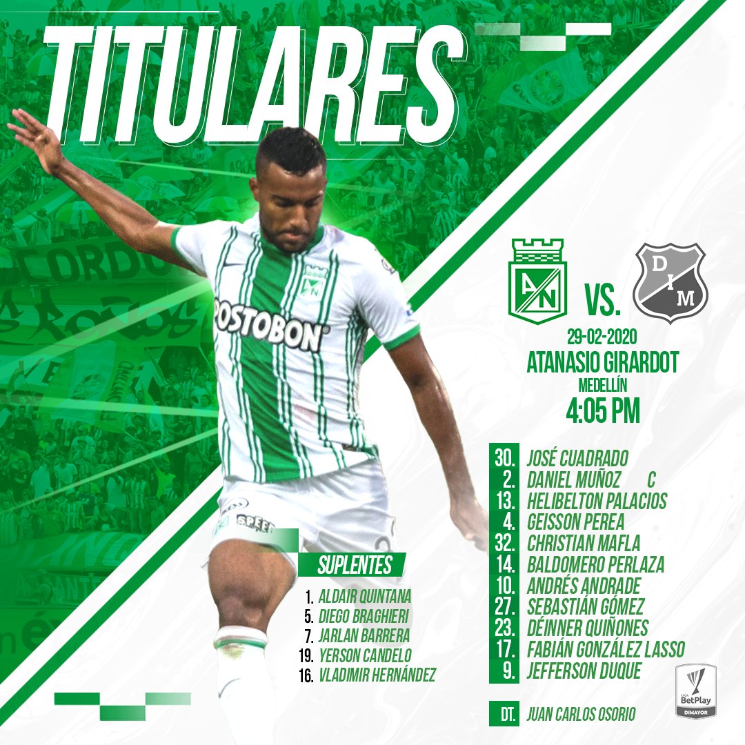 Foto: Así formarán Atlético Nacional e Independiente Medellín en el clásico 304