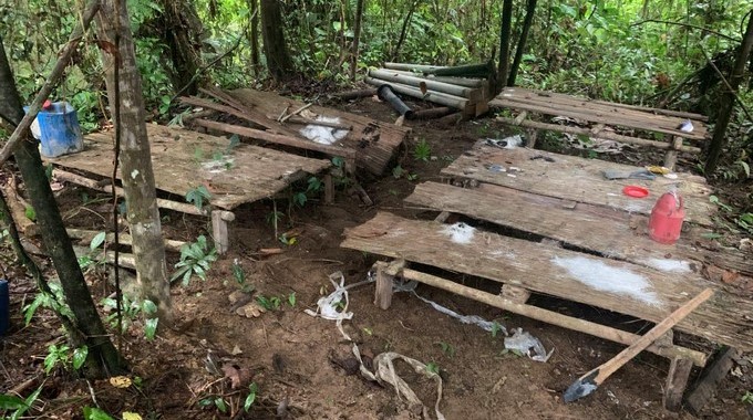 Gracias a información de Inteligencia Naval, se desplegó una operación en el municipio del Litoral San Juan, entre los corregimientos de Noamana y Puerto Murillo, en donde en medio de una zona selvática, fueron hallados tres campamentos en los que se ocultaba abundante material explosivo, de guerra e insumos para el procesamiento de alcaloides.