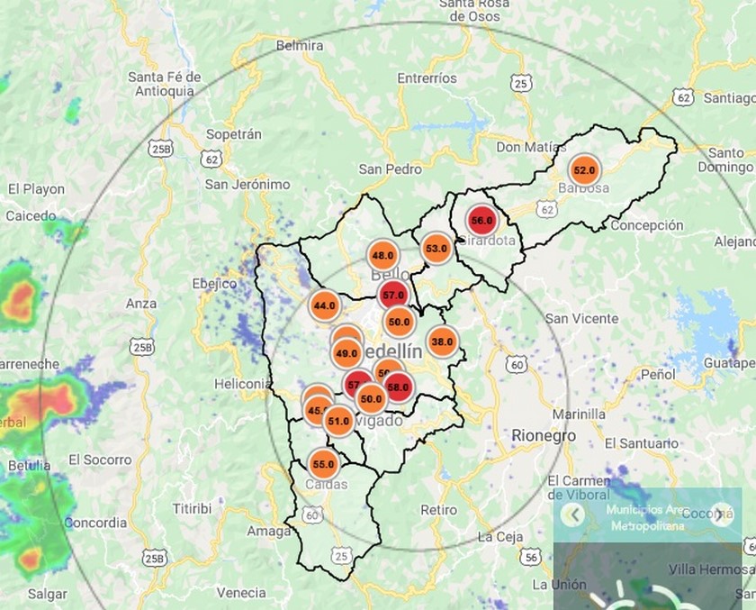 Las estaciones de El Poblado, Envigado, Aranjuez y Girardota son las que se encuentran en rojo, de acuerdo con la información del Siata . ¡Atención! Otra vez extienden la medida de pico y placa en Estado de Alerta.