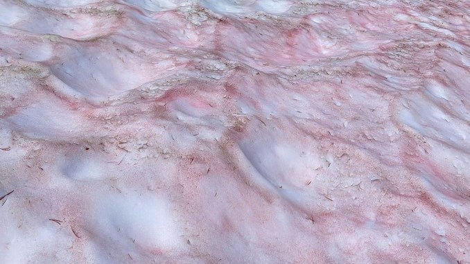 “Puede que sea agosto, pero todavía hay un montón de nieve y hielo por encima de 2.895 metros. Si miras de cerca en la primera imagen puedes notar una ligera coloración rojiza de la nieve. La segunda imagen es un ejemplo cercano de la coloración, te has preguntado ¿qué es?”, inicia el escrito.