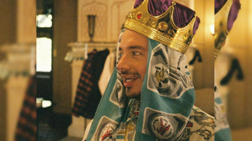 “Mi cara cuando yo pedí un trago y ella la botella”, dice la imagen de J Balvin mirando de forma pícara al horizonte luciendo una corona de “rey” con terciopelo morado, color que lleva por nombre su nueva canción.