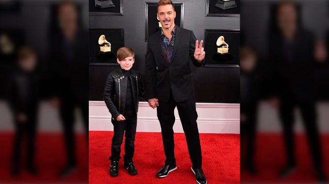 El cantante boricua Ricky Martin asistió a la gala del premio Grammy acompañado por su hijo Matteo, en lo que varios medios destacaron son “muy parecidos”.
