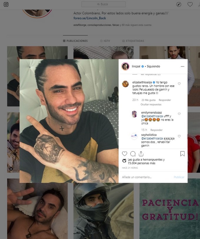 El actor Lincoln Palomeque, pareja de la presentadora Carolina Cruz con quien tiene un pequeño hijo Matías, publicó una fotografía en su cuenta de Instagram en el que luce, al parecer recién motilado, algo que le llamó la atención a la ‘candente’ modelo Elizabeth Loaiza.