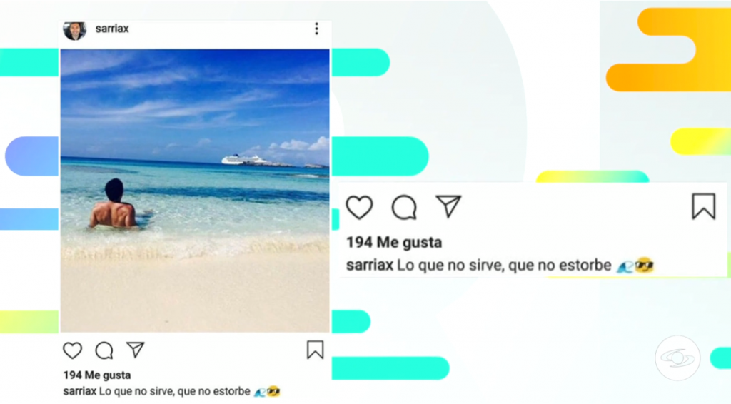 Sarria puso una imagen de él en una playa y la tituló “lo que no sirve, que no estorbe”, frase que ahora ya no aparece, pues el post fue editado por su dueño. Además esto sucede luego de que Cediel mostrara a su “nuevo amor”, un exparticipante del reality ‘Exatlón Estados Unidos’, programa que ella presentó.