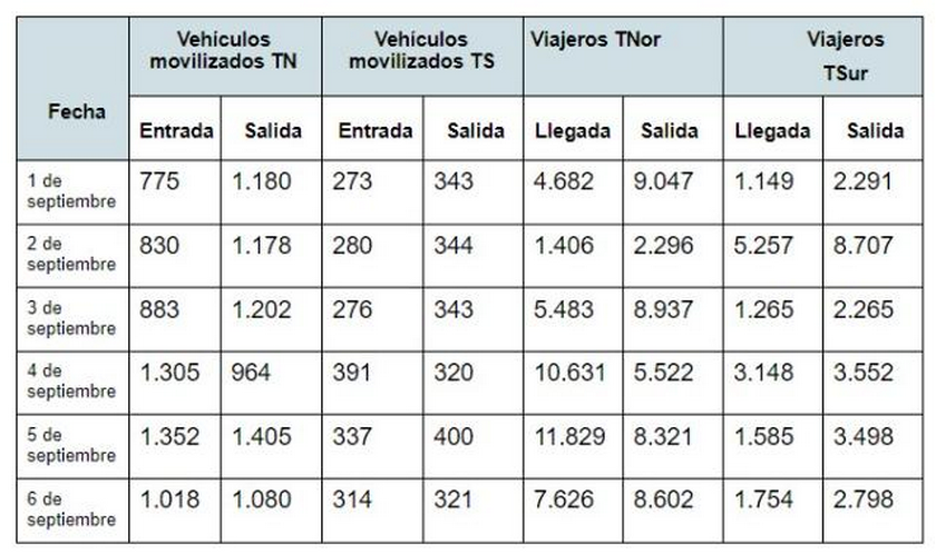 A través de la norte y la sur, se movilizaron 18.524 vehículos y un total de 122.000 pasajeros, una cifra que da cuenta de la manera en que se ha venido recuperando la confianza por parte de los viajeros y del gremio transportador.