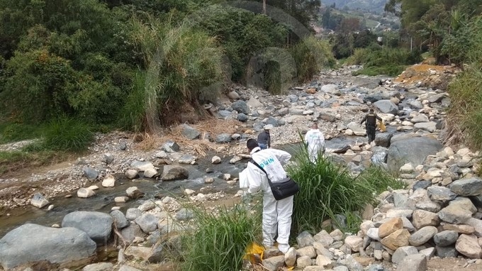 Las autoridades realizan la inspección técnica de un cuerpo que fue hallado en zona boscosa del sector La Ladrillera, corregimiento de San Cristóbal, Medellín.