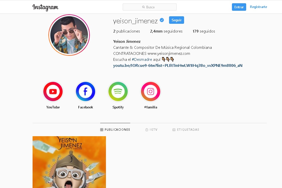 El cantante de música popular, Yeison Jiménez, famoso por canciones como “Aventurero”, “El desmadre”, “Ya no mi amor”, entre otros, borró todas sus publicaciones de Instagram.