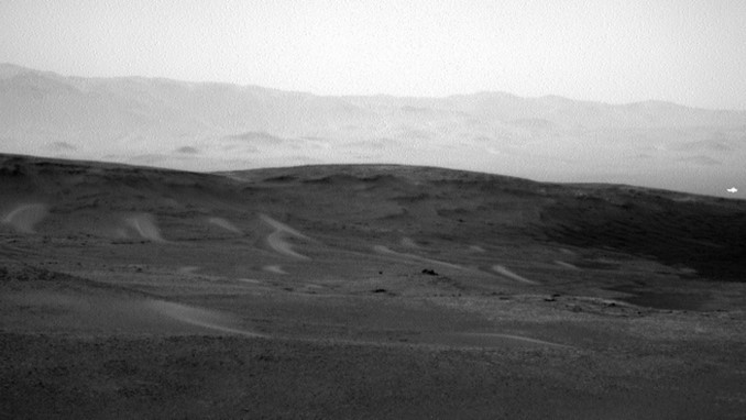 En la imagen tomada el pasado 16 de junio, a blanco y negro, se puede ver un punto brillante justo por encima de una duna, levantando nuevamente sospechas sobre la existencia de vida extraterrestre.