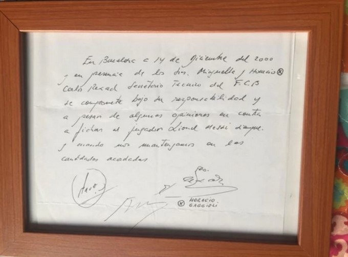 Tras esperar el regreso de Rexach, finalmente el 14 de diciembre del 2000, se firmó un ‘contrato’ en una servilleta para fichar a Messi y evitar que firmara con otros equipos españoles al ver su talento a pesar de su corta edad y estatura, ya que medía 1,48 metros.