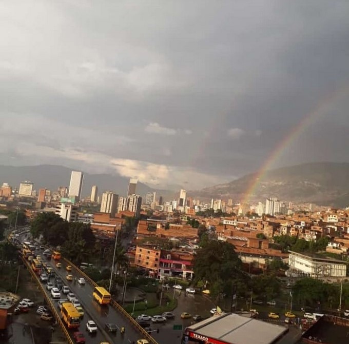 Luego de varias horas de lluvia y una tarde nublosa, apareció un hermoso arcoíris que brilló sobre la ‘Ciudad de la eterna primavera’.