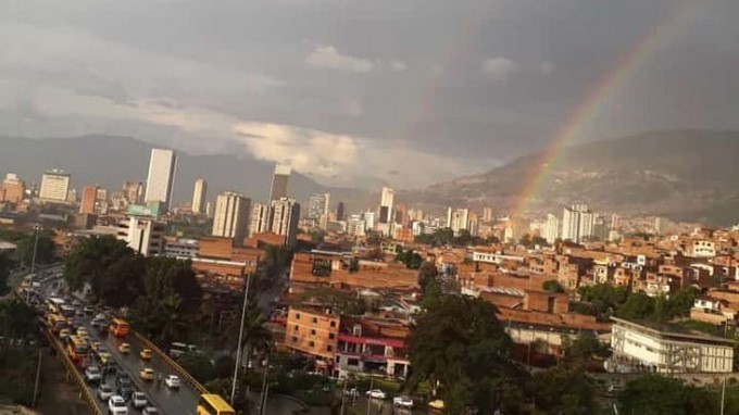 Luego de varias horas de lluvia y una tarde nublosa, apareció un hermoso arcoíris que brilló sobre la ‘Ciudad de la eterna primavera’.
