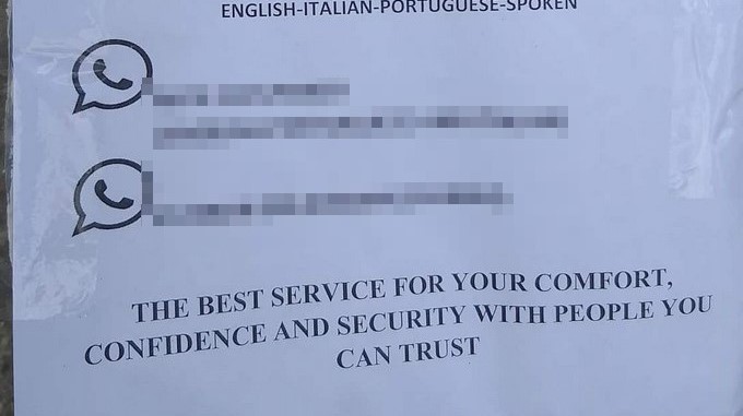 Los comerciantes y residentes del sector se despertaron con este volante en inglés que dice, “transporte personalizado por horas a lugares turísticos”, adicional a eso te pueden llevar a club nocturnos, “lugares calientes”, chicas, entre otros servicios.