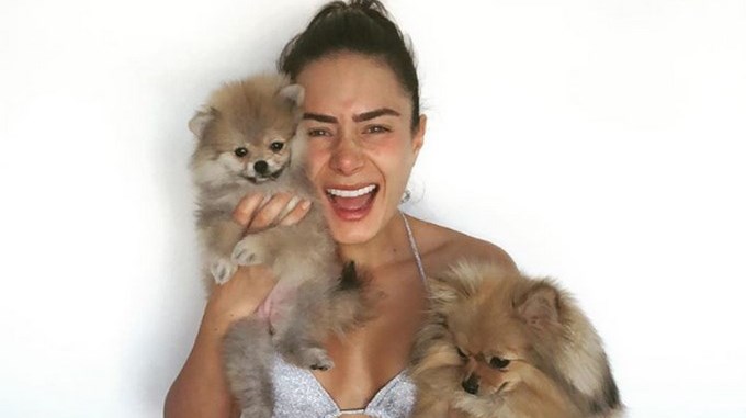 La actriz Johanna Fadul decidió celebrar el día mundial del perro como Dios la trajo al mundo con sus dos mascotas, Madonna y Paris, y a su novio Juanse Quintero, al parecer, no le gustó ni poquitico el chiste.