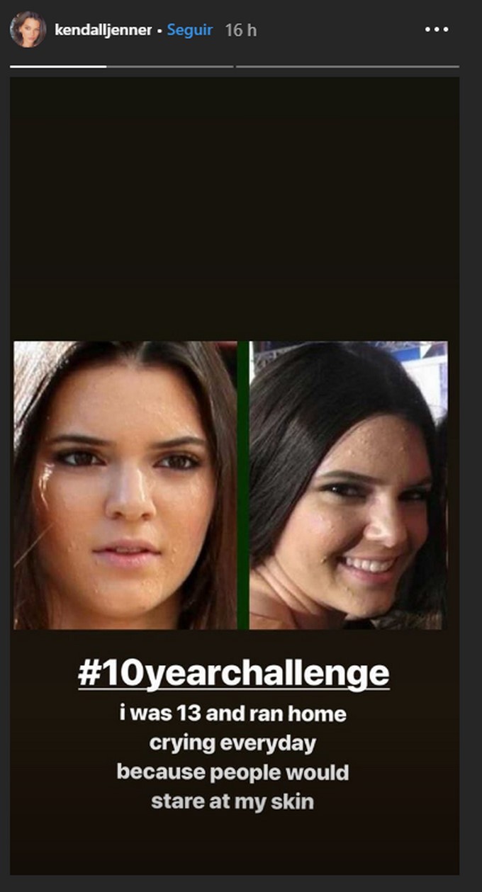 La modelo estadounidense Kendall Jenner, compartió su #10yearschallenge en las historias de Instagram, revelando una historia personal.