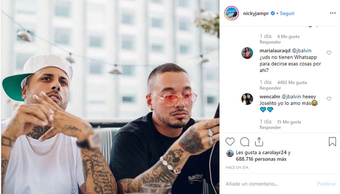 Todo ocurrió en Instagram. J Balvin es un bromista de primera y vio una gran oportunidad de trollear a su amigo Sebastián con las fotos que él publica con su novia María Laura, en las que se confiesan su amor ante el mundo. Con frases como “¿Ustedes no tienen WhatsApp pa decirse las cosas en privado?” el reguetonero se burló de los jóvenes y todo el mundo se rió del asunto, pero a ella no le pareció para nada gracioso.