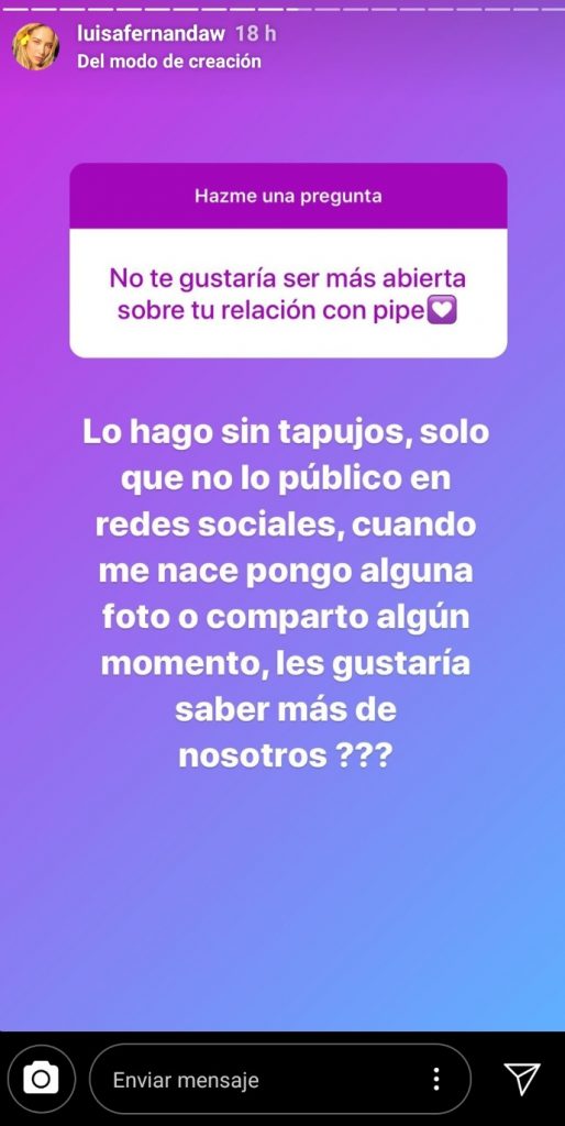 Luisa realizó una ronda de preguntas en sus historias de Instagram y allí fue donde varios usuarios le indagaron a la influencer por qué Pipe no aparece en las redes y si le gustaría ser un poco más abierta con el tema.
