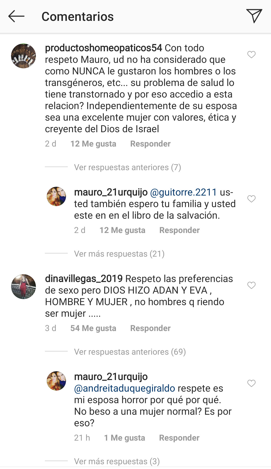 Uno de los usuarios hizo referencia al estado de salud del actor y se atrevió a decir que su amor por Isler era una secuela de su enfermedad y otro atinó a decir que debería darle “vergüenza besar a otro hombre”, todo en la sección de comentarios, pero Mauro no tuvo problema en contestar con altura y gallardía. A continuación el video y algunos de los mensajes mencionados.