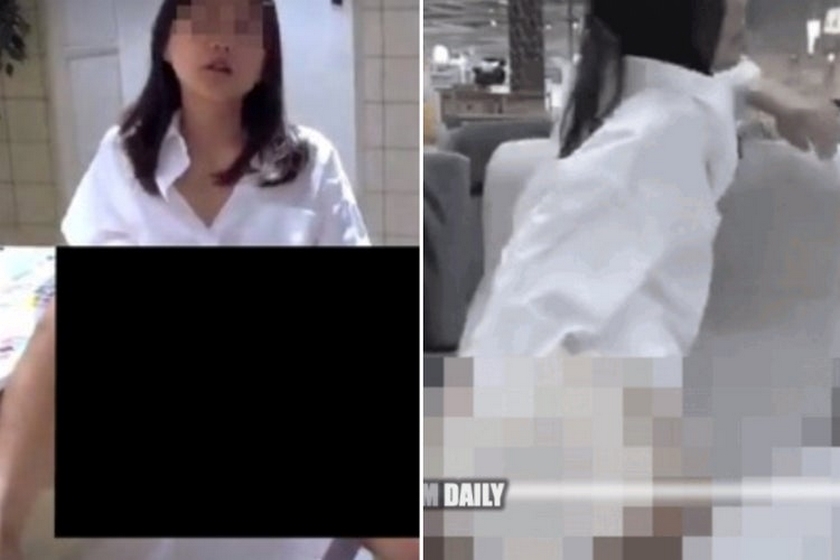 En el video se ve que la mujer sale medio desnuda mientras recorre varios sofás y camas de la tienda Ikea. Las autoridades han retirado los videos que no estaban censurados de las redes sociales.