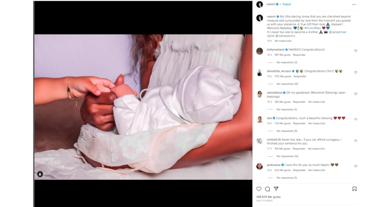 “Nunca es demasiado tarde para ser madre”, añadió en el texto que acompañaba una foto del bebé en sus brazos junto al brazo de una niña que supuestamente es el de su hija mayor, nacida en 2021.