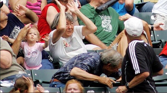 En la fotografía aparece un bate de dicho deporte, golpeando el rostro de uno de los asistentes al juego, sin embargo, quienes estaban a su al rededor también reaccionaron ante el bate, dejando como resultado el meme.